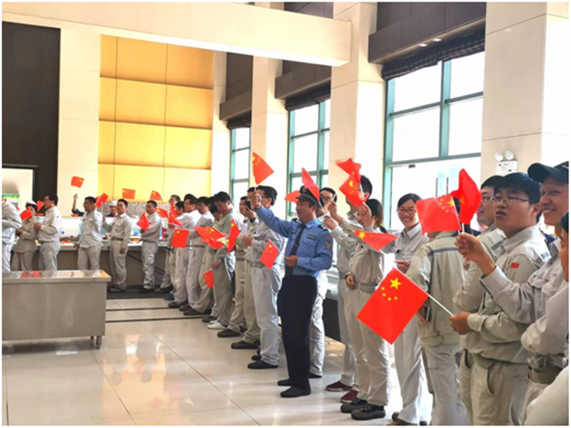 10月1日中午,一陣悅耳的小提琴聲在江蘇中能硅業的食堂中悠然響起,20余名身著工裝的青年員工,手持鮮艷的五星紅旗,跟隨小提琴演奏者的腳步快步步入餐廳中央,以一曲《我和我的祖國》,唱響愛國情懷。歌曲高潮處,大家紛紛揮舞著工作人員遞過來的五星紅旗高聲合唱,現場近500名工友激情高唱,用“快閃”表白祖國。整個“快閃”表演持續了4分鐘左右,嘹亮的歌聲在整個食堂回響,現場就餐的工作人員被這熱鬧的氣氛所感染,不約而同地放下筷子,拿出手機拍照片、錄視頻。一曲唱罷,熱烈的掌聲經久不息。